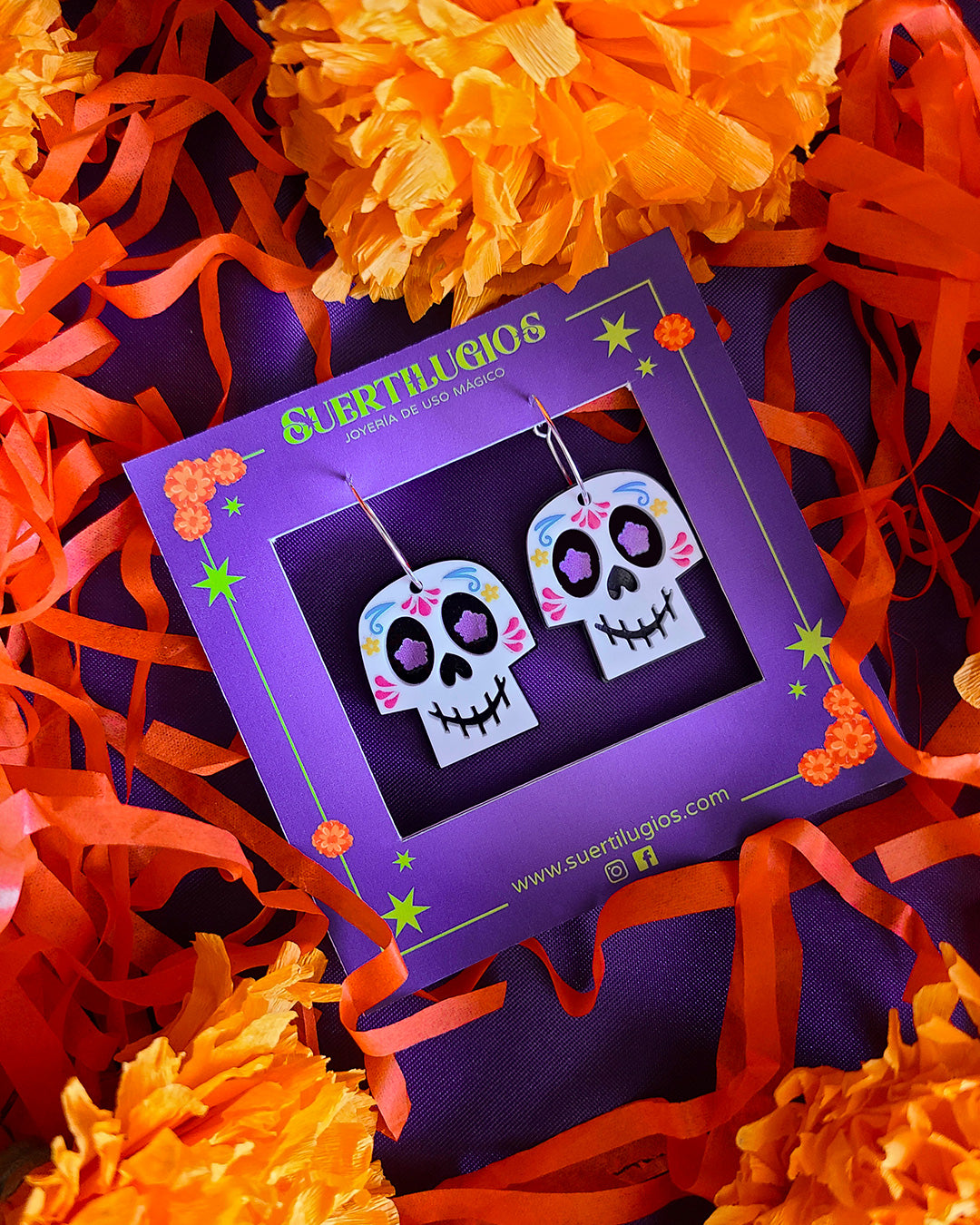 Estos aretes de Alma de colores están llenos de color y tradición, inspirados en un mundo donde la música, la familia y los recuerdos son eternos. Hechos en acrílico, cortados a láser y armados a mano, tienen 4,5 cm de altura ya con aro: ligeros, brillantes y llenos de vida.